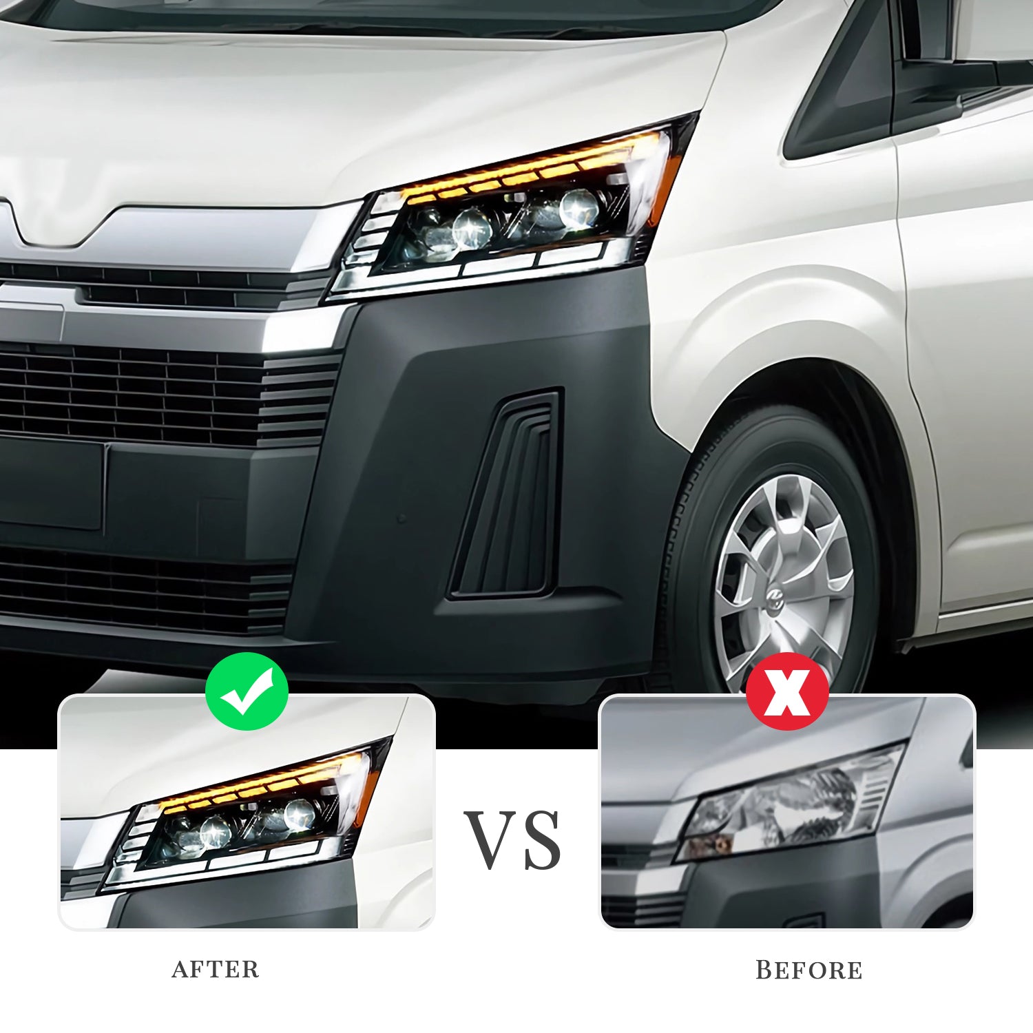 ✅【OEM Direct Fitment】Upgrade your Toyota Hiace 2019-2023 with HCMOTION Full LED Headlights. Experience a smoother, brighter and more efficient drive with Start UP Animation technology. Enhance your visibility and safety on the road while adding a touch of modernity to your vehicle. Upgrade now for a better driving experience.