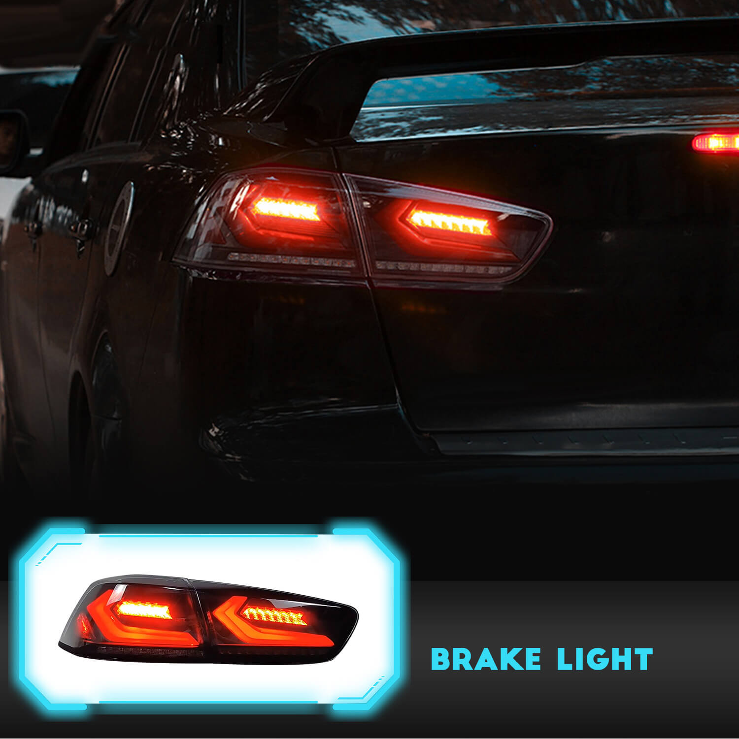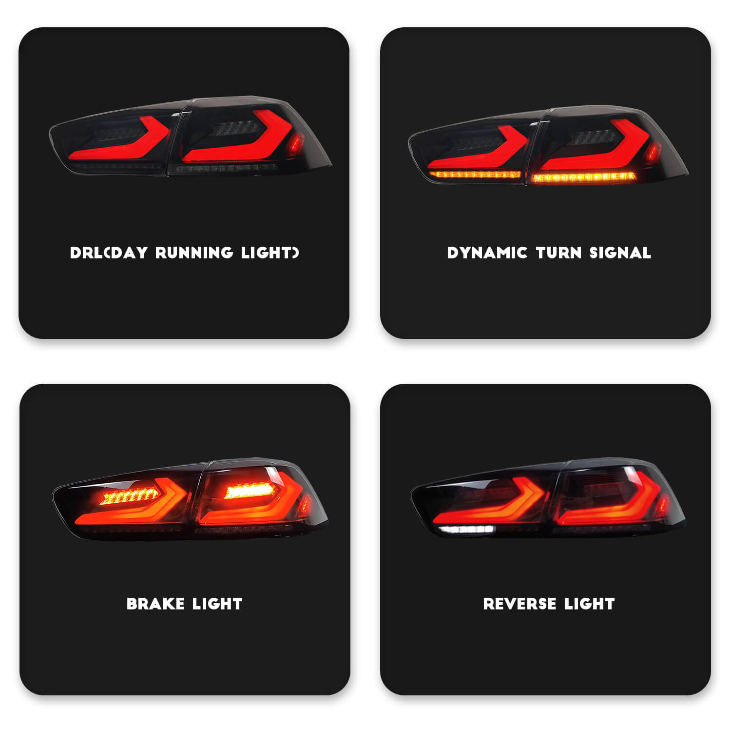 HCMOTIONZ LED Tail Lights for Mitsubishi Lancer & EVO X 2008-2017 Sequential 4Pcs Rear Lamp